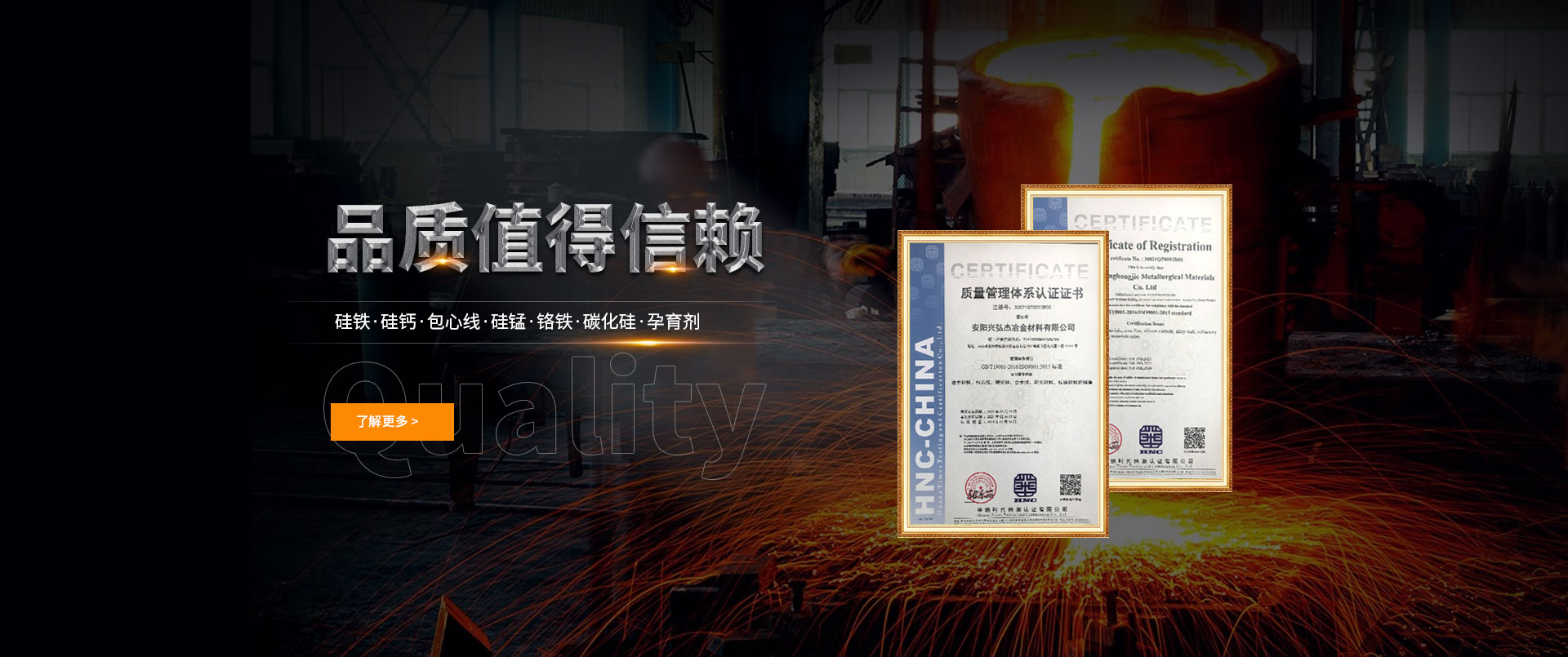 公司擁有國(guó)內(nèi)優(yōu)質(zhì)的治煉設(shè)備,主要生產(chǎn)設(shè)備有中頻電爐、破碎篩分生產(chǎn)線(xiàn)、氮化鉻鐵生產(chǎn)線(xiàn),合金包芯線(xiàn)生產(chǎn)線(xiàn)等。是從事生產(chǎn)銷(xiāo)售硅鈣合金、硅鋁合金、多元鐵合金、合金包芯線(xiàn)、氮化鉻鐵的企業(yè)。生產(chǎn)的產(chǎn)品品種系列齊全,質(zhì)量穩(wěn)定,適用范圍廣,能滿(mǎn)足客戶(hù)的不同需求。